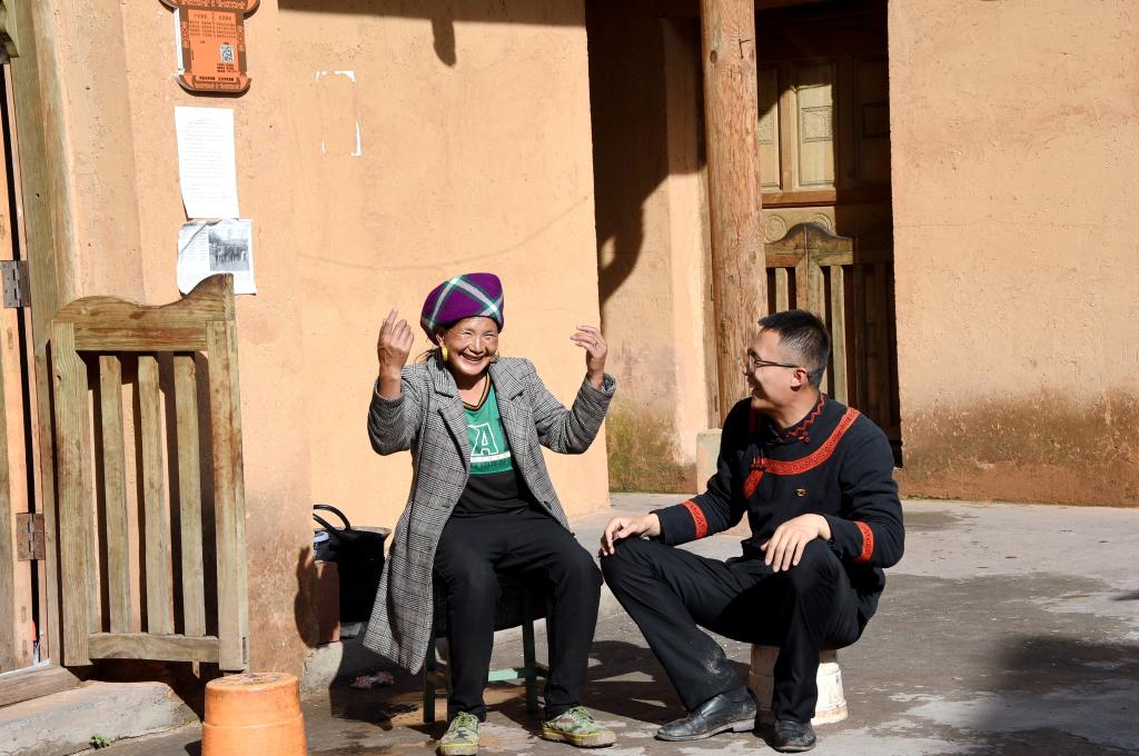 李凱在三河村村民阿巴阿呷家走訪。