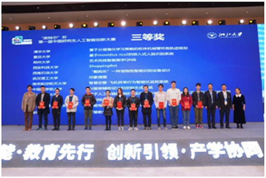 11月22-25日,由教育部學位與研究生教育發展中心指導、中國科協青少年科技中心主辦的“英特爾杯”第一屆中國研究生人工智能創新大賽全國總決賽在浙江舉行,我校學生楊靜婷、金垚燈、劉俊林、穆禹錕的作品“一種寵物狗智能識別設備的設計“獲全國三等獎,同時,我校獲優秀組織獎。該作品由人工智能研究院閔超和理學院陳云生老師指導。