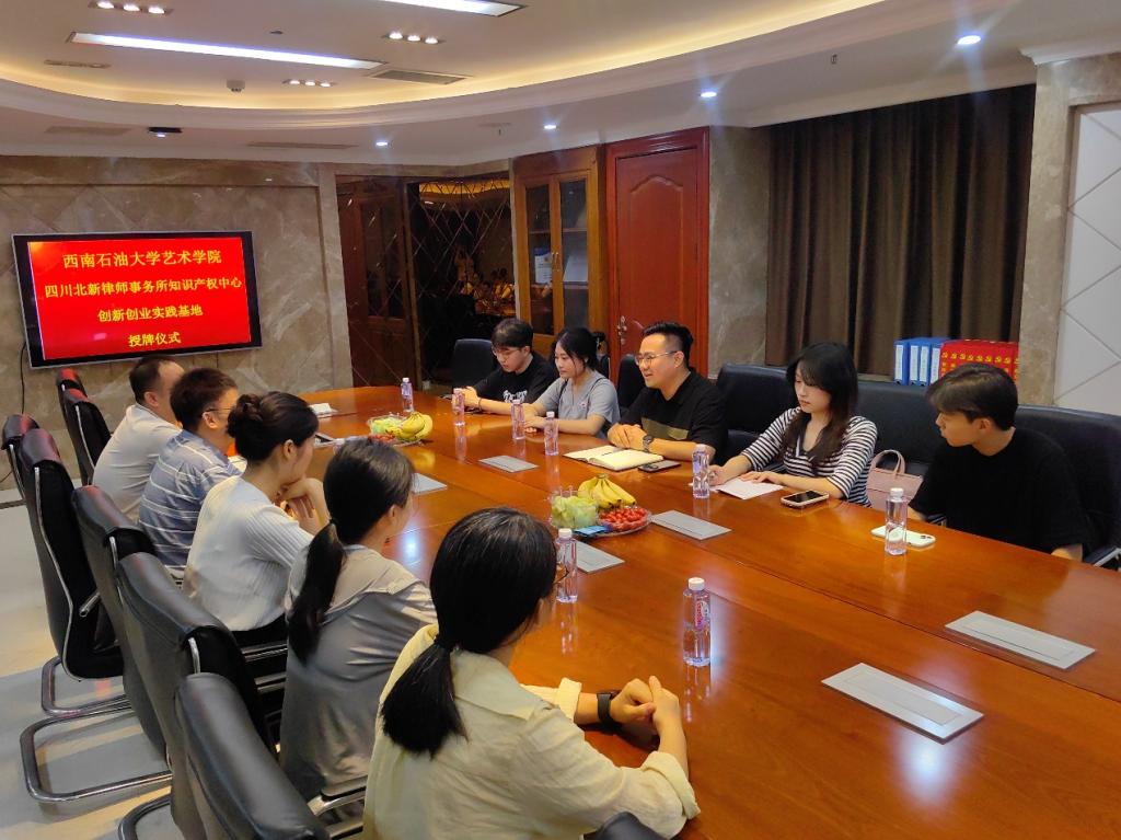 為進一步促進學院創新創業氛圍營造,打造創新創業實踐教育平臺。6月20日,藝術學院赴四川北新律師事務所知識產權中心進行座談交流,隆重舉行創新創業實踐基地簽約儀式。四川北新律師事務所主任、黨支部書記、新都區人大代表鄭志強,四川北新律師事務所知識產權中心主任謝宇、四川北新律師事務所知識產權中心商務總監何維,藝術學院團委副書記李安然,學院科創中心主要學生干部參與活動。