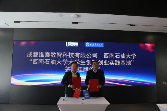 最后,雙創(chuàng)中心主任姚利與張偉共同簽署了共建“西南石油大學(xué)-維泰能源集團(tuán)”大學(xué)生創(chuàng)新創(chuàng)業(yè)實(shí)踐基地戰(zhàn)略合作協(xié)議,并為基地掛牌。根據(jù)合作協(xié)議內(nèi)容,維泰能源集團(tuán)將設(shè)立科研項(xiàng)目企業(yè)類命題,為學(xué)校實(shí)施大學(xué)生創(chuàng)新創(chuàng)業(yè)訓(xùn)練計(jì)劃、培育項(xiàng)目團(tuán)隊(duì)等方面提供支持;雙創(chuàng)中心不定期邀請(qǐng)維泰能源集團(tuán)相關(guān)人員來(lái)校開展各類創(chuàng)新創(chuàng)業(yè)講座、指導(dǎo)各類創(chuàng)新創(chuàng)業(yè)實(shí)踐活動(dòng)等。