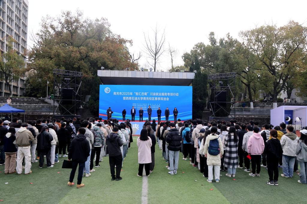 3月21日,2025年南充市“智匯巴蜀”川渝就業(yè)服務(wù)專項(xiàng)行動(dòng)暨西南石油大學(xué)南充校區(qū)春季雙選會(huì)在田徑場(chǎng)運(yùn)動(dòng)場(chǎng)舉行,現(xiàn)場(chǎng)同步開展“空中雙選”直播帶崗,讓學(xué)生就業(yè)觸屏可及。