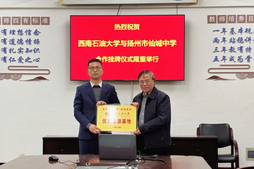 4月12日,西南石油大學地球科學與技術學院黨委副書記、紀委書記張勇赴江蘇省四星級普通高級中學——揚州市仙城中學開展招生宣傳工作,并與該校簽署“優質生源基地”共建協議。仙城中學校長孟華、副校長趙井岡、教師代表滕飛等出席座談會,雙方就深化校際合作、創新人才培養模式展開深入交流。