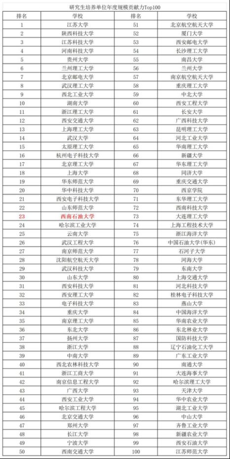 日前,中國學位與研究生教育學會發布了《中國研究生創新實踐系列大賽2023年度報告》,公布了研究生培養單位年度貢獻力T0P100排行榜,我校第35位,位列四川省省屬高校第一;年度規模貢獻力第23位,位列四川省高校第一。