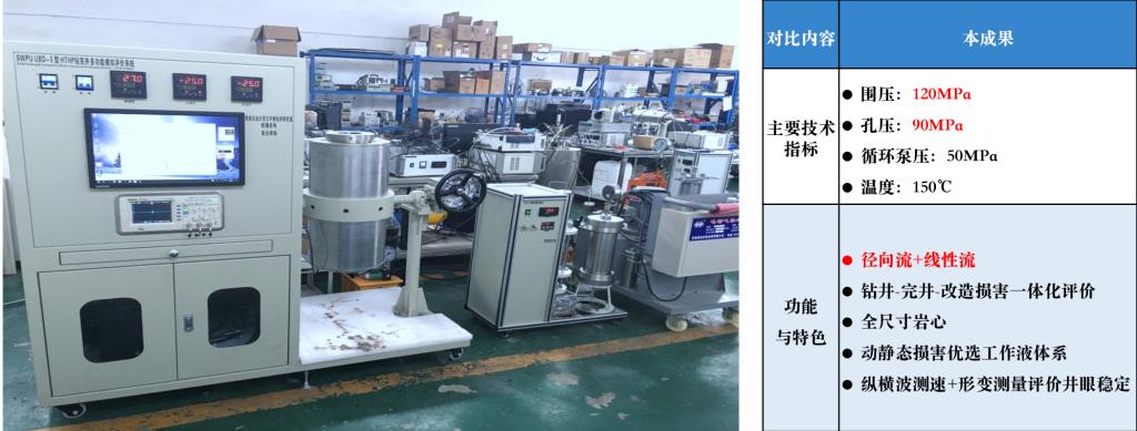 針對復雜地質目標鉆完井工程技術鉆前優化決策及隨鉆評價技術不完善,缺乏系統的決策支持軟件系統,無法滿足科學評價、高效決策、效益開發的技術難題,研制了模擬150℃、120MPa環境的鉆完井全尺寸巖心儲層損害實驗評價裝置,首次實現了模擬井筒徑向流動環境的鉆完井儲層損害實驗評價;建立了低滲透油氣藏鉆完井儲層損害與產能定量評價方法,為低滲油氣藏鉆完井工藝優化決策提供了支撐。發明了模擬250℃、120MPa環境的井筒流動實驗裝置,構建了氣侵、漏噴同存、氣液置換、液液置換等復雜環境井筒-地層耦合瞬態流動高精度計算方法及隨鉆評價系統,為復雜地層井筒流動安全評價提供了關鍵支撐。首創了微波通信雙向數據傳輸的氣體鉆井井下隨鉆微波測量系統,開發了46參數隨鉆數據采集系統和“現場-遠程-移動終端”安全風險隨鉆智能預警平臺,為氣體鉆井地面安全風險控制贏得了3-5分鐘黃金處置時間。研制了地質工程一體化鉆完井技術量化評價與決策支持軟件系統,為復雜地層的鉆完井工藝量化、快速、科學評價和決策優化提供了關鍵手段。