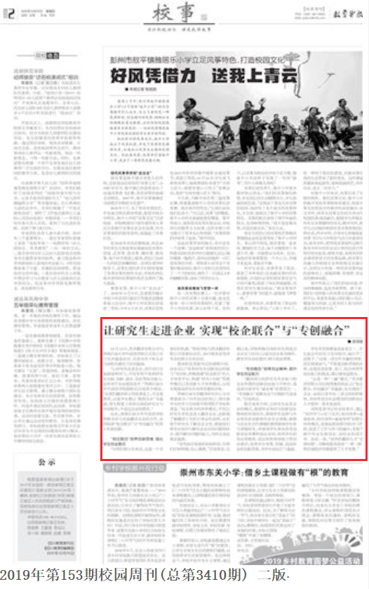《教育導(dǎo)報》:讓研究生走進企業(yè) 實現(xiàn)“校企聯(lián)合”與“專創(chuàng)融合”http://jydb.scedumedia.com/DocumentElectronic/doc-9267.html?tdsourcetag=s_pctim_aiomsg