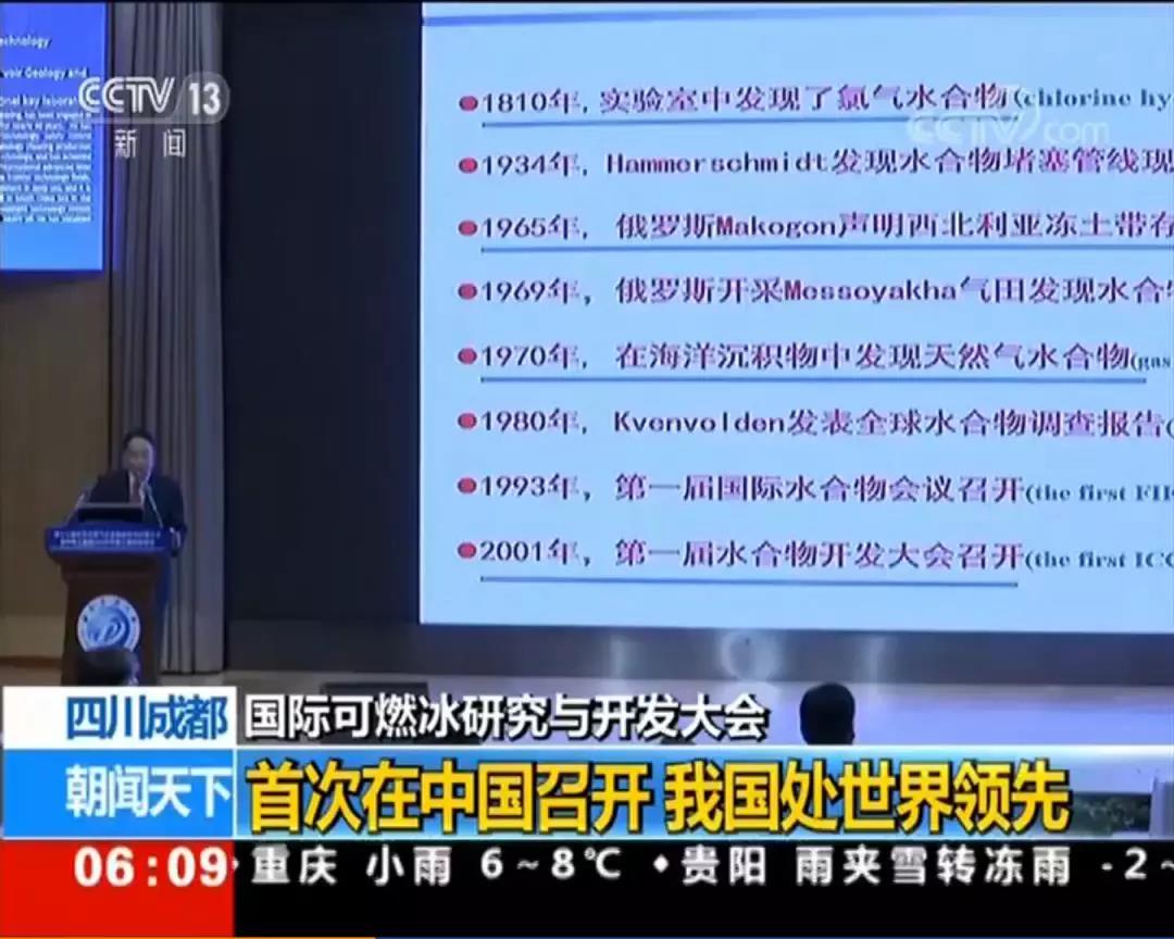 12月8日上午6:09,中央電視臺CCTV-13新聞頻道以《國際可燃冰研究與開發大會首次在中國召開 我國處世界領先》為題,用1分8秒的時長報道了在我校舉行的第十二屆世界天然氣水合物研究與開發大會,以及我校在可燃冰研究方面所取得的成就,這表明我校在天然氣水合物研究與試采領域做出的突出貢獻得到了國際社會的廣泛認可。