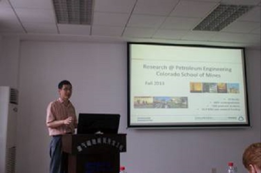 Graves教授一行參觀了國家重點實驗室的特殊氣藏、巖石力學、儲層微觀分析、流體分析、非常規儲層物性分析以及鉆井模擬器等實驗室。隨后,尹小龍博士后詳細介紹了科羅拉多礦業大學的學科設置和研究領域,Graves教授在國重A403學術報告廳進行了“Laser Drilling”的學術講座。據介紹,旋轉鉆井技術是目前石油天然氣勘探開發中廣泛應用的鉆井方式,但隨著鉆井難度的加大,鉆井成本呈指數級上升趨勢,亟需發展新的和更有效的替代方法。而激光鉆井,光子以直線路徑行進,所鉆井眼不會偏離;激光鉆井不需要大量鉆井液的循環,對井場環境的污染大大減小,有利于環保。但激光破巖技術目前尚處于室內實驗階段,仍然是一個探索性的課題,例如通過滲透率改變、巖石力學性質變化來對比砂巖、紅巖和頁巖等巖石的微觀變化,從而解決激光鉆井破巖技術在復雜地層中的應用問題。