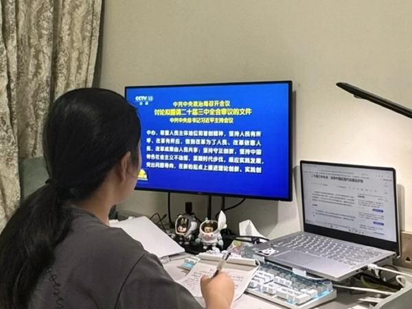 學生黨員收看黨的二十屆三中全會場景