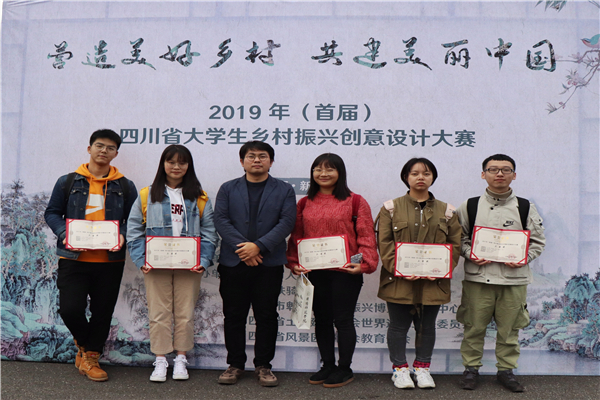 11月9日,2019(首屆)四川省大學生鄉村振興創意設計大賽獲獎作品路演暨頒獎會在綿陽師范學院舉行。城鄉規劃學子王子祺、陳旭、楊凱瑞、江瑞、張慧穎的作品《春韭清沁,桂香滿溢》榮獲三等獎,實現了本專業省級學科競賽“零”的突破。