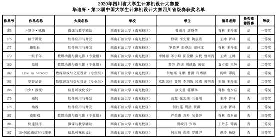 因受疫情影響,此次四川省級賽采用線上比賽方式進行。經過作品初審、線上演示、提問答辯等環節,信息學院14支學生參賽隊伍斬獲四川省級賽事13項大獎。其中,信息學院院長胥林、教師王丹東指導數字媒體技術2018級曾雨肖、唐曉倩共同完成的微課與教學輔助類作品《卜算子·詠梅》榮獲一等獎。其他參賽隊伍分別榮獲二等獎7項、三等獎5項。一等獎、二等獎獲獎代表隊將被推薦參加今年8月舉行的國賽。