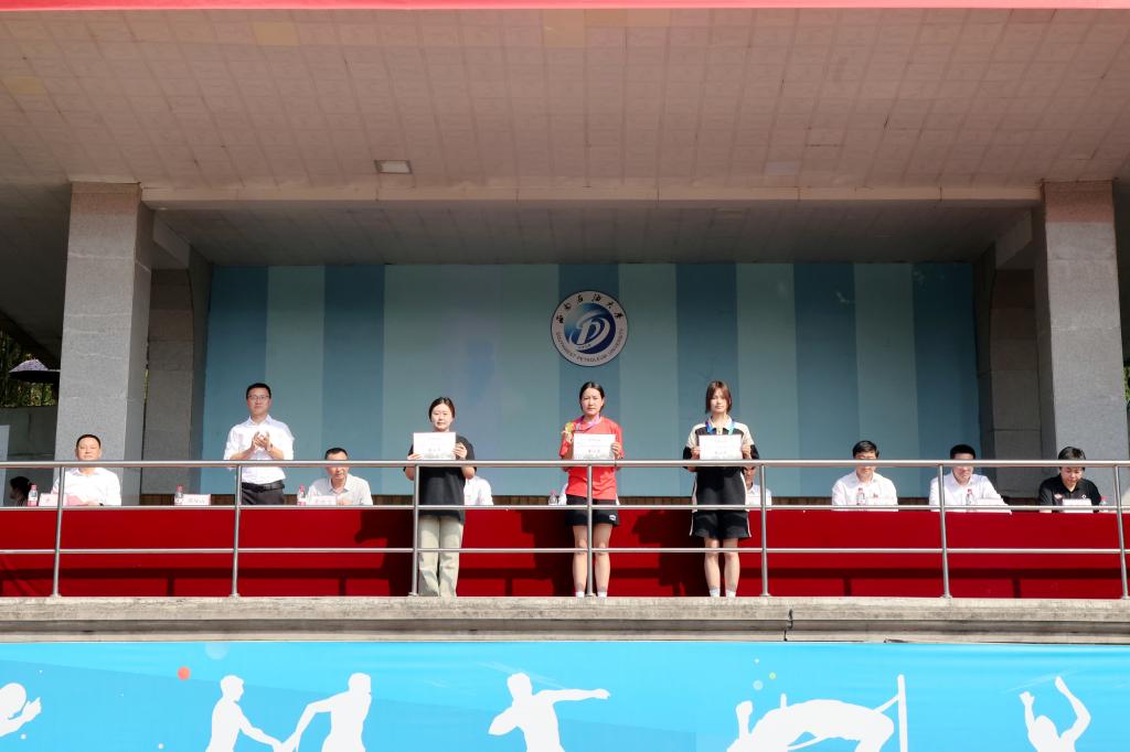 經過激烈角逐,計科院、理學院、電信院榮獲入場式方隊前三名。理學院、計科院、土測院、新材院榮獲“體育道德風尚獎”。機電院、新材院、經管院榮獲“異程接力賽”前三名。機電院鄧文意榮獲“女子最佳運動員”稱號,經管院蔣俊杰榮獲“男子最佳運動員”稱號。機電院、土測院、電信院分別榮獲“學生女子團體”前三名。機電院、經管院、新材院分別榮獲“學生男子團體”前三名。機電院、電信院、土測院、理學院、經管院榮獲“教工體育風尚獎”。機關二隊、機關一隊榮獲“教工團體獎”第一名。新材院、計科院分別榮獲“教工團體獎”第二名、第三名。(周煊涵 李丹陽 大學生全媒體中心/李雅茹 尹滕怡 劉雨桐 徐玉釩 唐嘉寧 何勇 王子璇 高玙婧 許交 黃科杰 王一丁 李維 毛欣彤 曾家輝 吳鑫 )