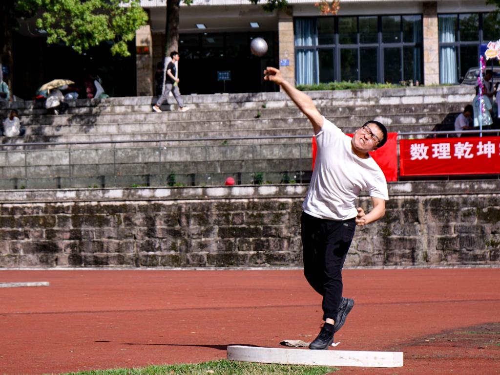 在鉛球投擲區,鉛球比賽正在進行。選手們緊握鉛球,身體微微下蹲,準備發力。隨著一聲低吼,鉛球被用力擲出,在空中劃出一道優美的弧線,落在遠處的沙坑里。他們的動作流暢而有力,展現出出色的力量和技巧。投擲結束后,選手們互相鼓勵,現場充滿了友誼與競爭的氛圍。