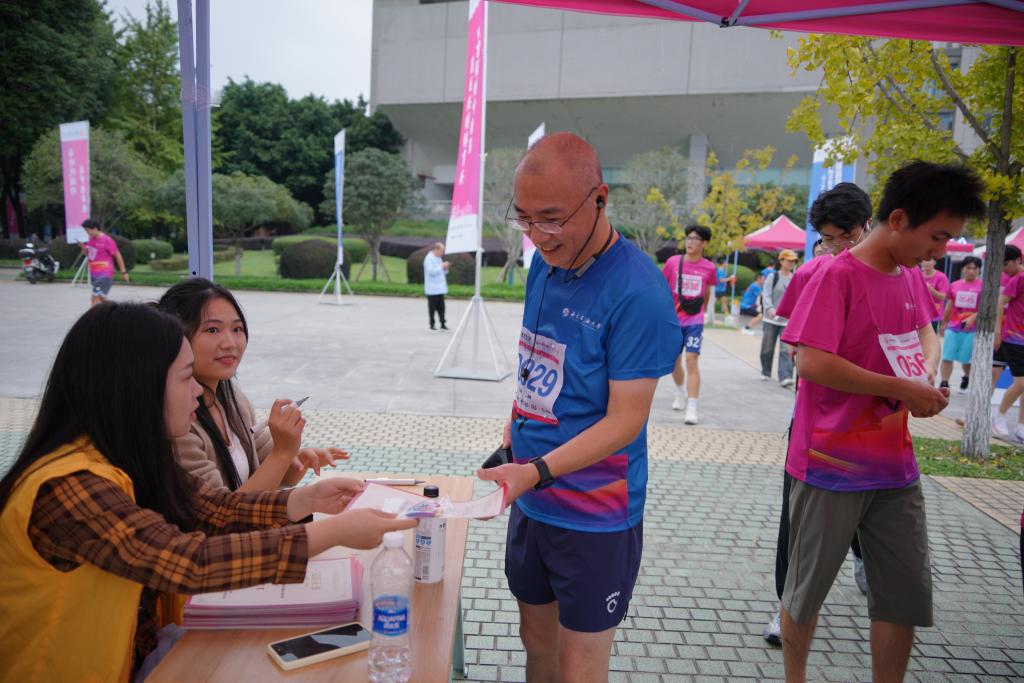 參賽師生校友青春洋溢,一路揮灑汗水,不斷挑戰(zhàn)自我。一呼一吸,一步一腳印,參賽者共同享受奔跑與風景交融的盛宴?!疤衾?!再堅持下!”路邊觀眾和啦啦隊員為參賽選手吶喊助威,志愿者為參賽者保駕護航,不少學生受氣氛感染也加入到馬拉松的隊列。