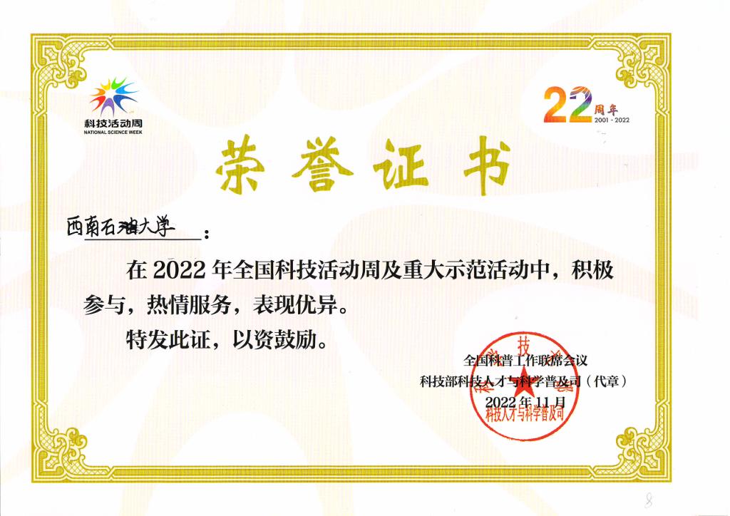 物理演示與探索實(shí)驗(yàn)室于2009年獲批成為四川省第二批科普基地,也是四川省基礎(chǔ)物理學(xué)科類唯一的科普基地,目前有專兼職科普人員8人。該基地平均每年為大中小學(xué)等校外教育機(jī)構(gòu)開(kāi)展科普活動(dòng)近40次,年均服務(wù)15000余人次。近年針對(duì)偏遠(yuǎn)山區(qū)中小學(xué)科普教育資源匱乏的情況,開(kāi)展了“遠(yuǎn)行科普活動(dòng)”計(jì)劃,并向金陽(yáng)縣初級(jí)中學(xué)捐贈(zèng)了價(jià)值14.8萬(wàn)元的科普設(shè)備,幫助這些學(xué)校更好地開(kāi)展科普工作。基地在四川省、成都市、新都區(qū)以及西南石油大學(xué)舉辦的各類大型科普活動(dòng)中,均得到了觀眾的良好反饋,多次被成都市科技局評(píng)為優(yōu)秀參展單位。2022年學(xué)校因此獲得全國(guó)科普工作聯(lián)席會(huì)議、科技部科技人才與科學(xué)普及司頒發(fā)的榮譽(yù)證書(shū)。