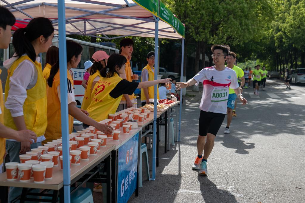 賽事的順利進行離不開多部門聯(lián)動配合,醫(yī)療團隊全程守護、300名志愿者活躍賽道、安保人員細心引導、后勤職工用心服務,各二級工會在終點大本營為參賽者提供貼心服務,各處補給點還提供清涼解暑的飲料水果、藿香正氣水等補給品,讓選手盡情享受奔跑樂趣。