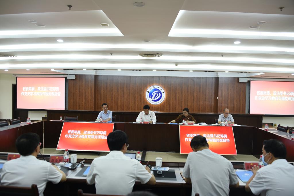 6月30日,省委常委、政法委書記鄧勇來校調研,為師生作黨史學習教育專題黨課報告。