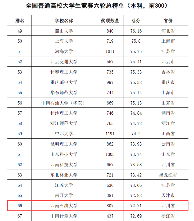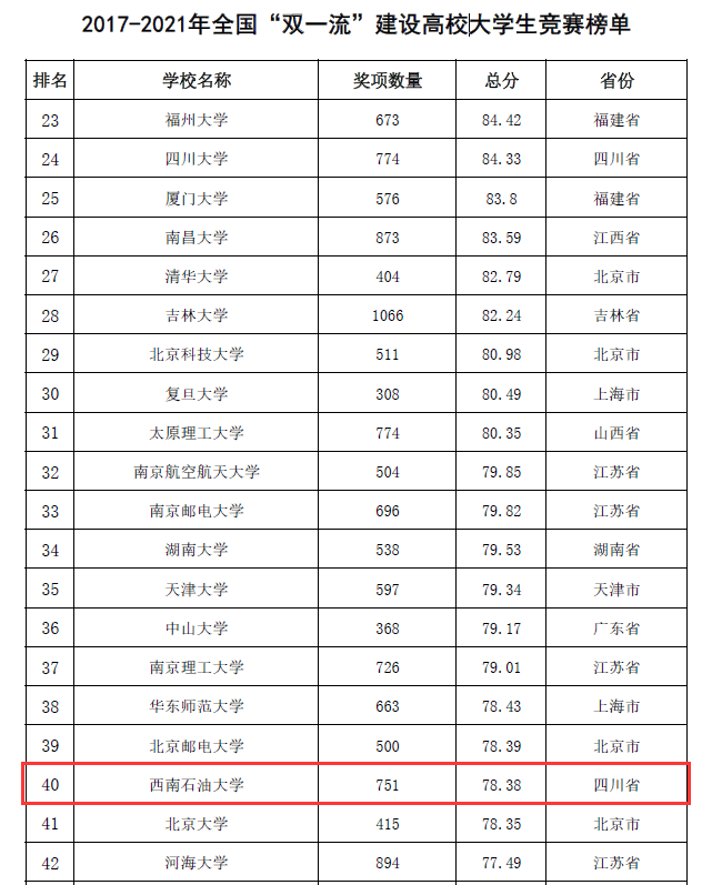 此外,在同步發布的2017-2021年全國普通高校大學生競賽榜單中,我校位列全國43,位列“雙一流”建設高校40,位列全國地方本科高校第8名;在第六輪總榜單(2012-2021年)中,我校位列全國66。各項排名較以往年度均創新高。