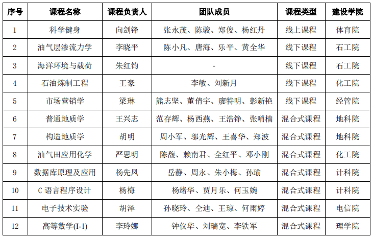 我校第二批國家級一流本科課程名單