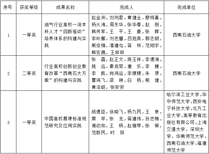 西南石油大學2022年國家級教學成果獎獲獎項目