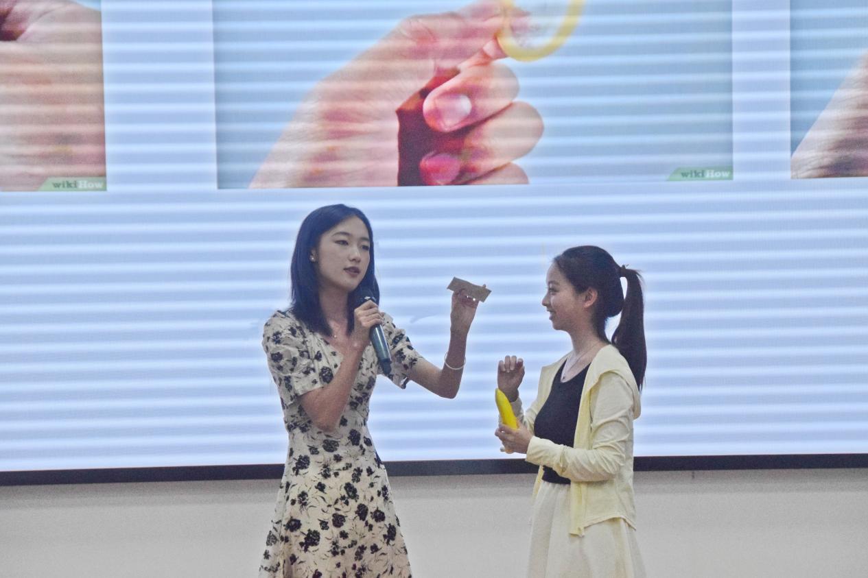 我校同伴教育講師慕麗麗通過互動游戲的方式分享了安全套使用方法、hiv檢查方法等艾滋病核心防治知識。