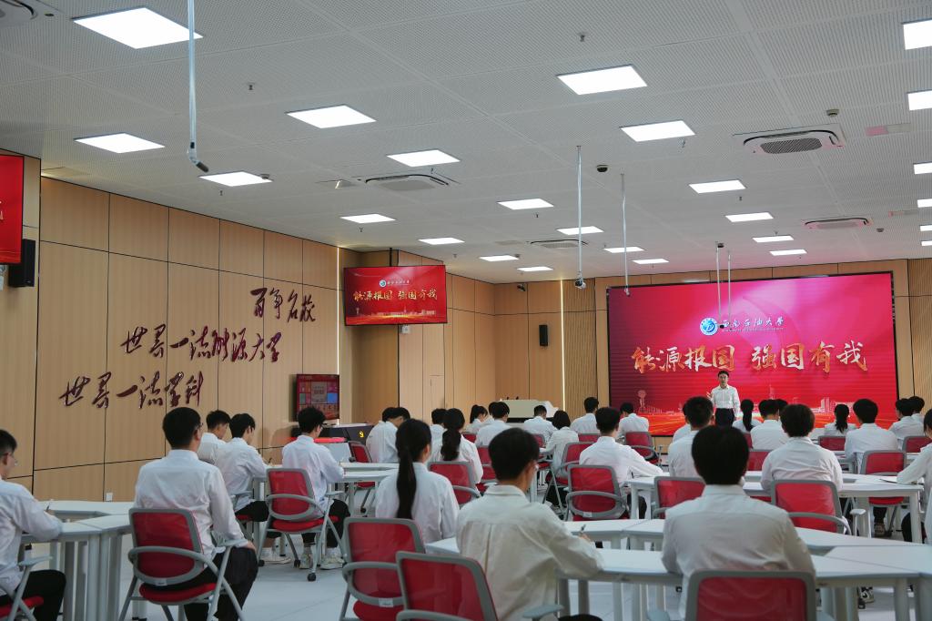 張烈輝從能源安全對國家發(fā)展的戰(zhàn)略意義,我國石油工業(yè)的發(fā)展歷程,新時代青年的使命與擔當三個方面進行講解。介紹了黨的十八大以來,以習近平同志為核心的黨中央提出的“四個革命、一個合作”能源安全新戰(zhàn)略。他指出,面對全球能源變革與國內(nèi)新挑戰(zhàn),保障能源安全、推動綠色轉(zhuǎn)型是當前要務。我國雖已成為全球最大能源生產(chǎn)與消費國,構(gòu)建了多元供給體系,但仍面臨油氣對外依存度高、能效待提升、新能源技術需突破等問題。加快建設能源強國,實現(xiàn)能源自主可控與可持續(xù)發(fā)展,是實現(xiàn)民族復興的必然要求。