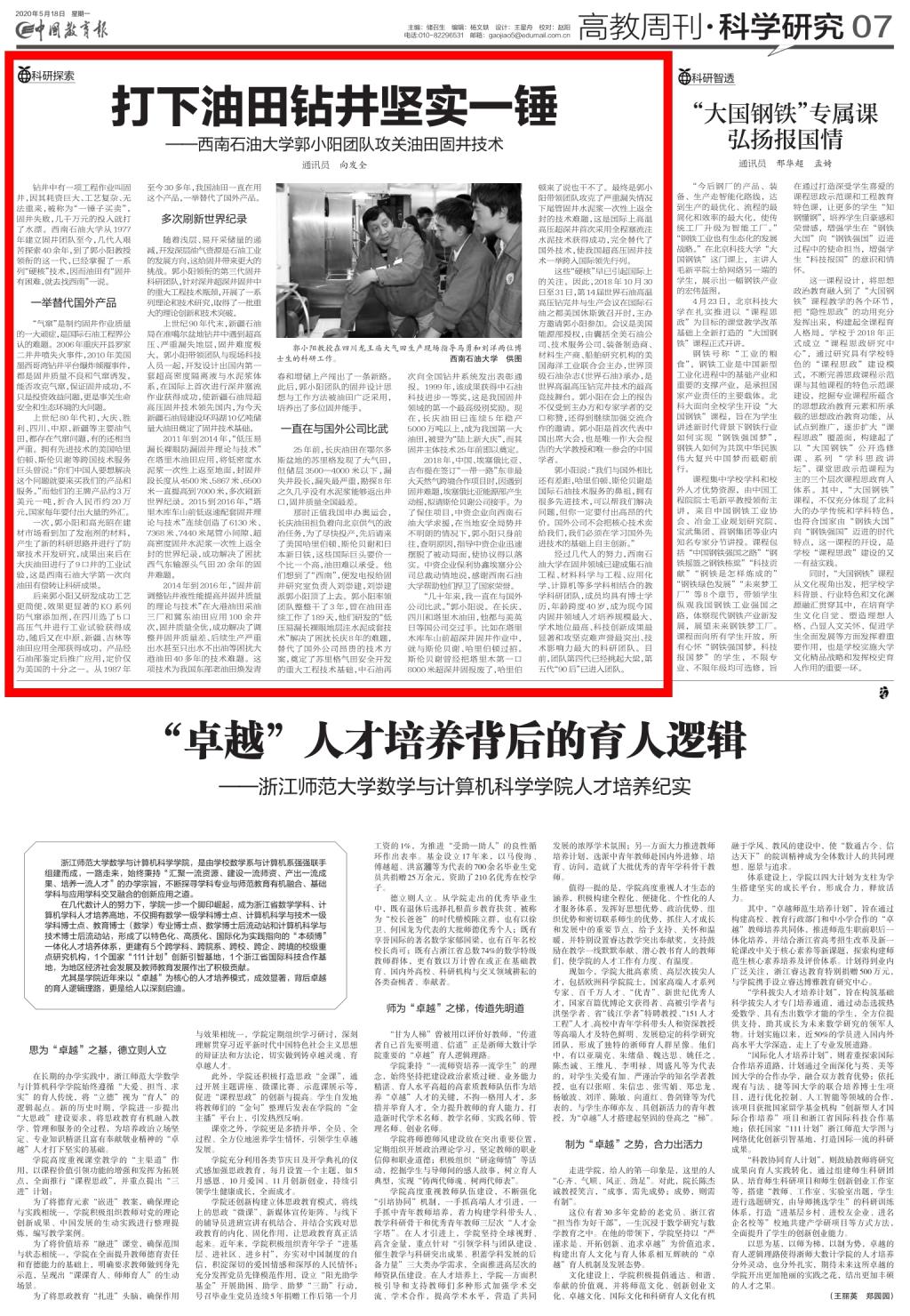 一直在與國外公司比武 25年前,長慶油田在鄂爾多斯盆地的蘇里格發現了大氣田,但儲層3500—4000米以下,漏失井段長,漏失最嚴重,勘探8年之久幾乎沒有水泥漿能夠返出井口,固井質量全國最差。 那時正值我國申辦奧運會,長慶油田擔負著向北京供氣的政治任務,為了盡快投產,先后請來了美國哈里伯頓、斯倫貝謝和日本新日鐵,這些國際巨頭要價一個比一個高,油田難以承受。他們想到了“西南”,便發電報給固井研究室負責人劉崇建,劉崇建派郭小陽頂了上去。郭小陽率領團隊整整干了3年,曾在油田連續工作了189天,他們研發的“低壓易漏長裸眼地層注水泥成套技術”解決了困擾長慶8年的難題,替代了國外公司昂貴的技術方案,奠定了蘇里格氣田安全開發的重大工程技術基礎,中石油再次向全國鉆井系統發出表彰通報。1999年,該成果獲得中石油科技進步一等獎,這是我國固井領域的第一個最高級別獎勵。現在,長慶油田已連續5年穩產5000萬噸以上,成為我國第一大油田,被譽為“陸上新大慶”,而其固井主體技術25年前即以奠定。 2018年,中國、埃塞俄比亞、吉布提在簽訂“一帶一路”東非最大天然氣跨境合作項目時,因遇到固井難題,埃塞俄比亞能源部產生動搖,擬請斯倫貝謝公司接手。為了保住項目,中資企業向西南石油大學求援,在當地安全局勢并不明朗的情況下,郭小陽只身前往,查明原因,指導中資企業迅速擺脫了被動局面,使協議得以落實。中資企業保利協鑫埃塞分公司總裁動情地說,感謝西南石油大學幫助他們捍衛了國家榮譽。 “幾十年來,我一直在與國外公司比武。”郭小陽說。在長慶、四川和塔里木油田,他都與美英日等國公司交過手。比如在塔里木庫車山前超深井固井作業中,就與斯倫貝謝、哈里伯頓過招。斯倫貝謝曾經把塔里木第一口8000米超深井固報廢了,哈里伯頓來了說也干不了。最終是郭小陽帶領團隊攻克了嚴重漏失情況下尾管固井水泥漿一次性上返全封的技術難題,這是國際上高溫高壓超深井首次采用全程塞流注水泥技術獲得成功,完全替代了國外技術,使我國超高壓固井技術一舉跨入國際領先行列。 這些“硬核”早已引起國際上的關注。因此,2018年10月30日至31日,第14屆世界石油高溫高壓鉆完井與生產會議在國際石油之都美國休斯敦召開時,主辦方邀請郭小陽參加。會議是美國能源部授權,由囊括全美石油公司、技術服務公司、裝備制造商、材料生產商、船舶研究機構的美國海洋工業聯合會主辦,世界頂級石油雜志《世界石油》承辦,是世界高溫高壓鉆完井技術的最高競技舞臺。郭小陽在會上的報告不僅受到主辦方和專家學者的交口稱贊,還得到繼續加強交流合作的邀請。郭小陽是首次代表中國出席大會,也是唯一作大會報告的大學教授和唯一參會的中國學者。 郭小陽說:“我們與國外相比還有差距,哈里伯頓、斯倫貝謝是國際石油技術服務的鼻祖,擁有很多先進技術,可以幫我們解決問題,但你一定要付出高昂的代價。國外公司不會把核心技術賣給我們,我們必須在學習國外先進技術的基礎上自主創新。” 經過幾代人的努力,西南石油大學在固井領域已建成集石油工程、材料科學與工程、應用化學、計算機等多學科相結合的教學科研團隊,成員均具有博士學歷,年齡跨度40歲,成為現今國內固井領域人才培養規模最大、學術地位最高、科技創新成果最顯著和攻堅克難聲譽最突出、技術影響力最大的科研團隊。目前,團隊第四代已經挑起大梁,第五代“90后”已進入團隊。 中國教育報鏈接 http://paper.jyb.cn/zgjyb/html/2020-05/18/content_579978.htm?div=-1 |