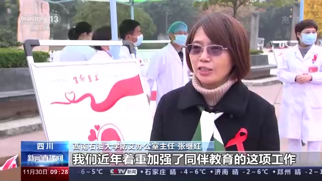 西南石油大學防艾辦公室主任 張繼紅:我們著重加強了同伴教育這項工作,每年會培訓20多位大學生(作為)同伴教育的小講師,開展60到70場主題班會和講座。(總臺央視記者 薛晨 王新琦 黃鑫 吉林臺 肖建成 李永飛 湖南臺 劉瑋 譚俊 四川臺 胡欣 李丁)