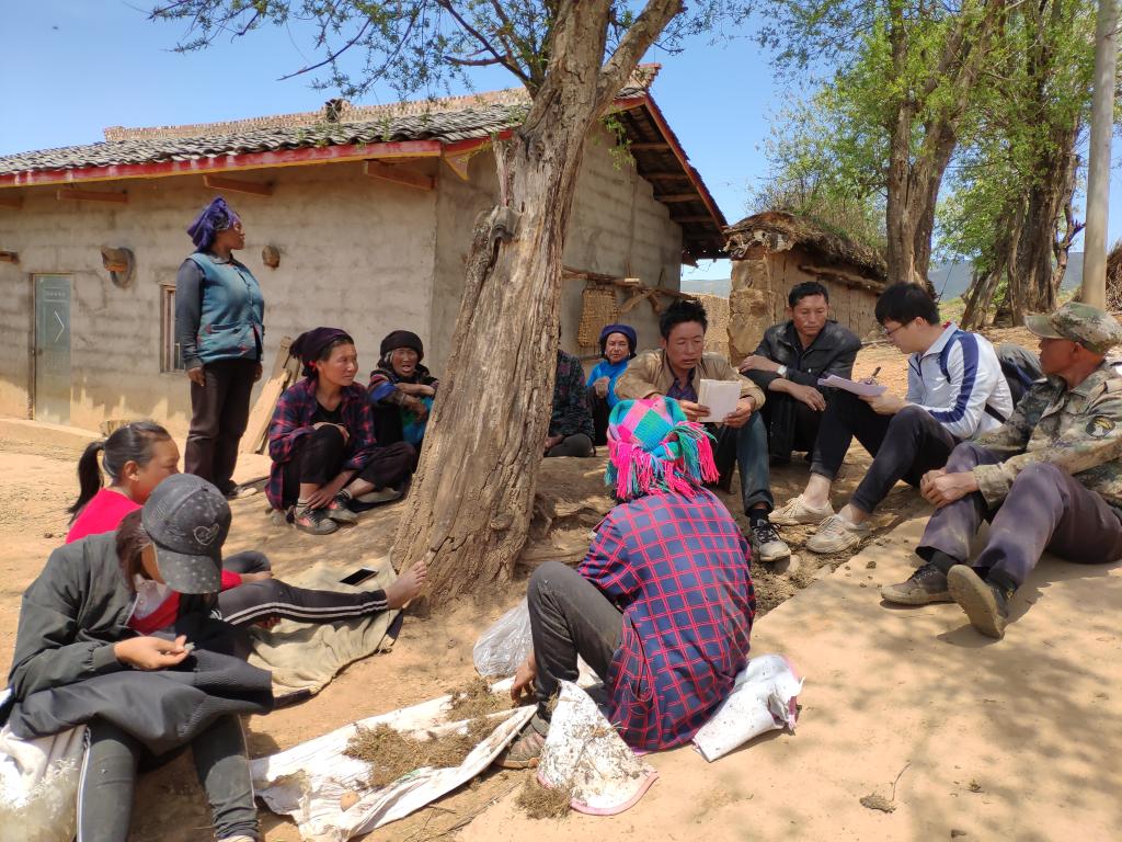 李凱(著白色運動上衣者)和村民在村里座談交流 受訪者供圖