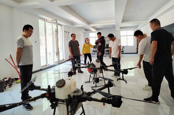 工作隊帶領村組干部考察農藥自動噴灑無人機