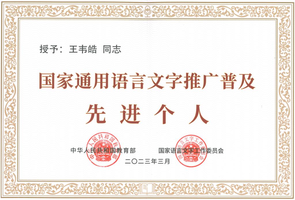 王韋皓作為語言教師,參加工作20余年來,在語言文字園地辛勤耕耘,學術研究、普通話水平測試、普通話評審培訓等方面朵朵花開,碩果累累。