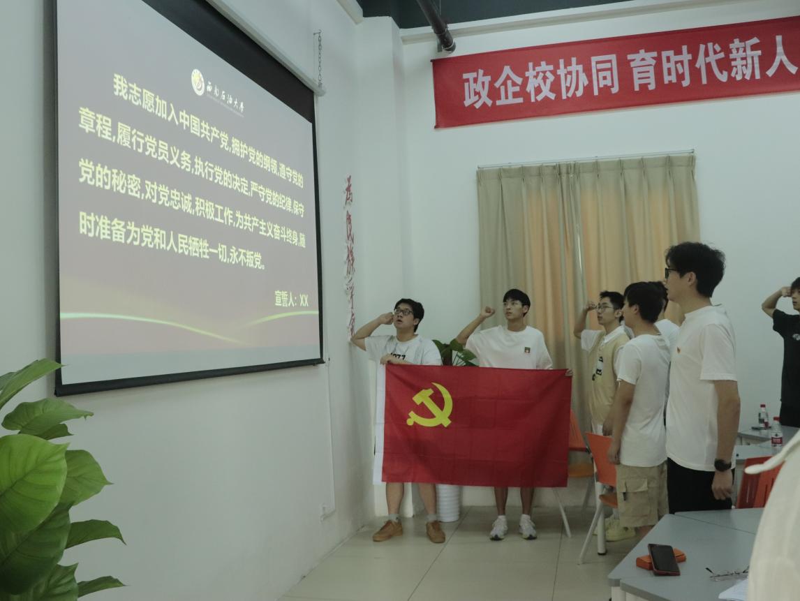活動中,郭雅寧等6名畢業生黨員進行了紅色經典書籍分享。學校黨建辦公室主任、黨委組織部副部長、機關黨委書記張鳳帶來了題為《從黨的歷史中汲取智慧力量》的專題黨課。地科院黨委副書記、紀委書記張勇結合學院發展歷程和能源行業現狀,深情寄語畢業生黨員:“作為新時代的能源人,要傳承好‘為祖國加油,為民族爭氣’的石大精神,在能源報國的實踐中淬煉黨性、增長才干。”隨后,與會黨員圍繞“如何將個人成長融入國家能源發展戰略”這一主題展開了熱烈討論。最后,全體畢業生黨員面對黨旗,重溫入黨誓詞。