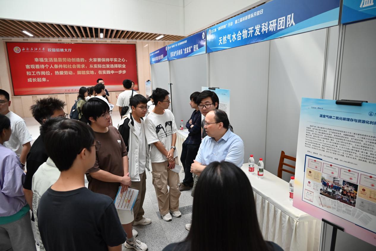“作為大三學生,我對深造和科研充滿了向往。但選擇哪個學科,主攻哪個研究方向,我心中無數。參加科研團隊開放日活動之后,我才得以深入地了解石油行業對科技的需求,哪些需要我們去解決,這下我可以好好規劃自己的未來。”5月10日,石油工程2022級本科生尹仕政在走訪了幾位導師后滿有信心地說。