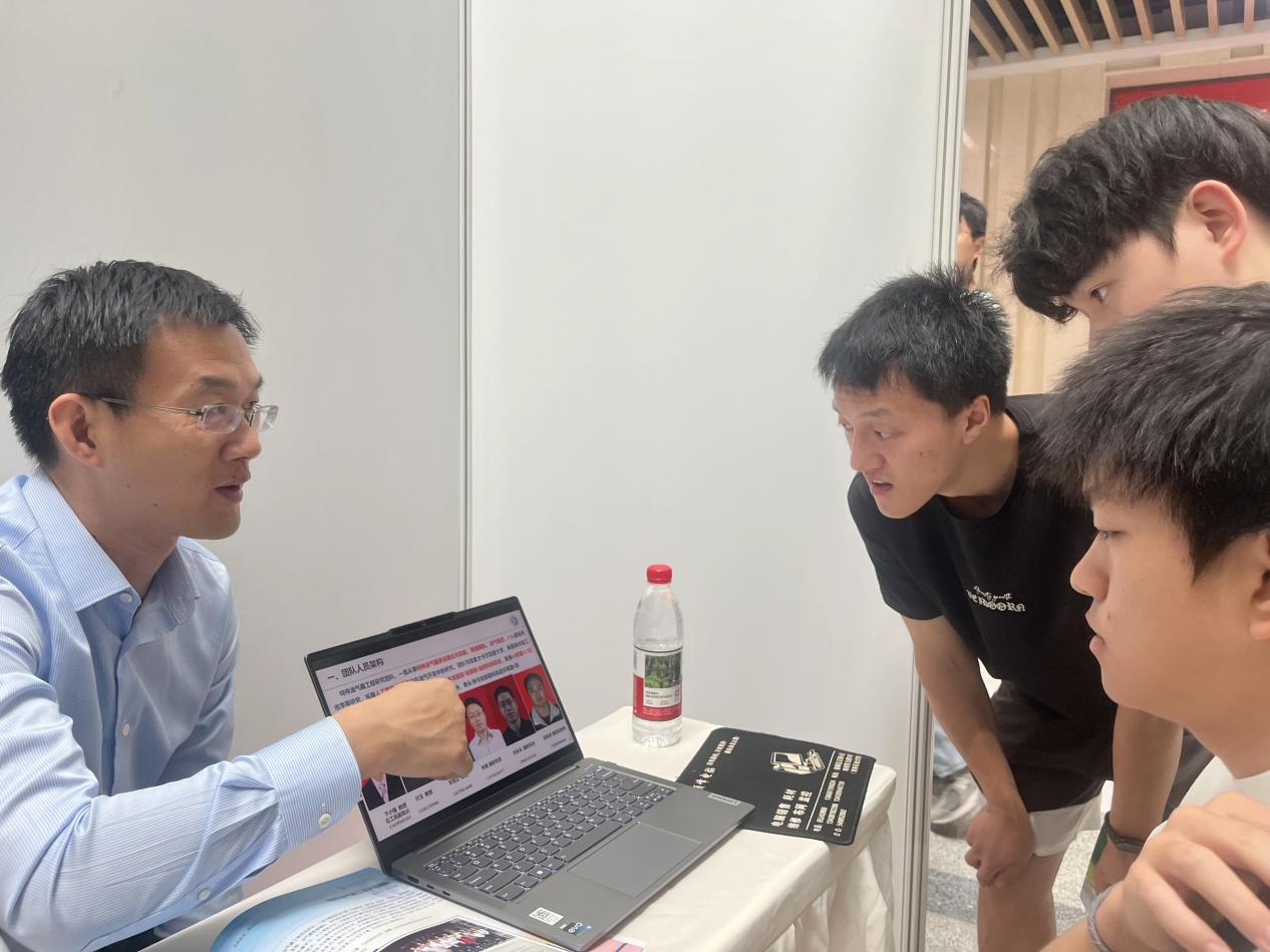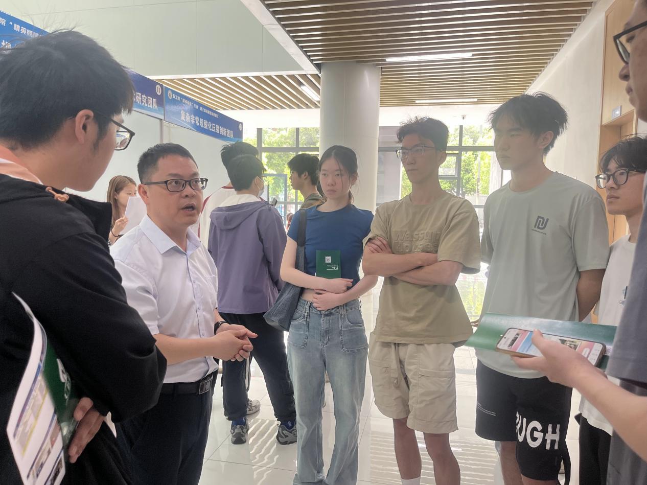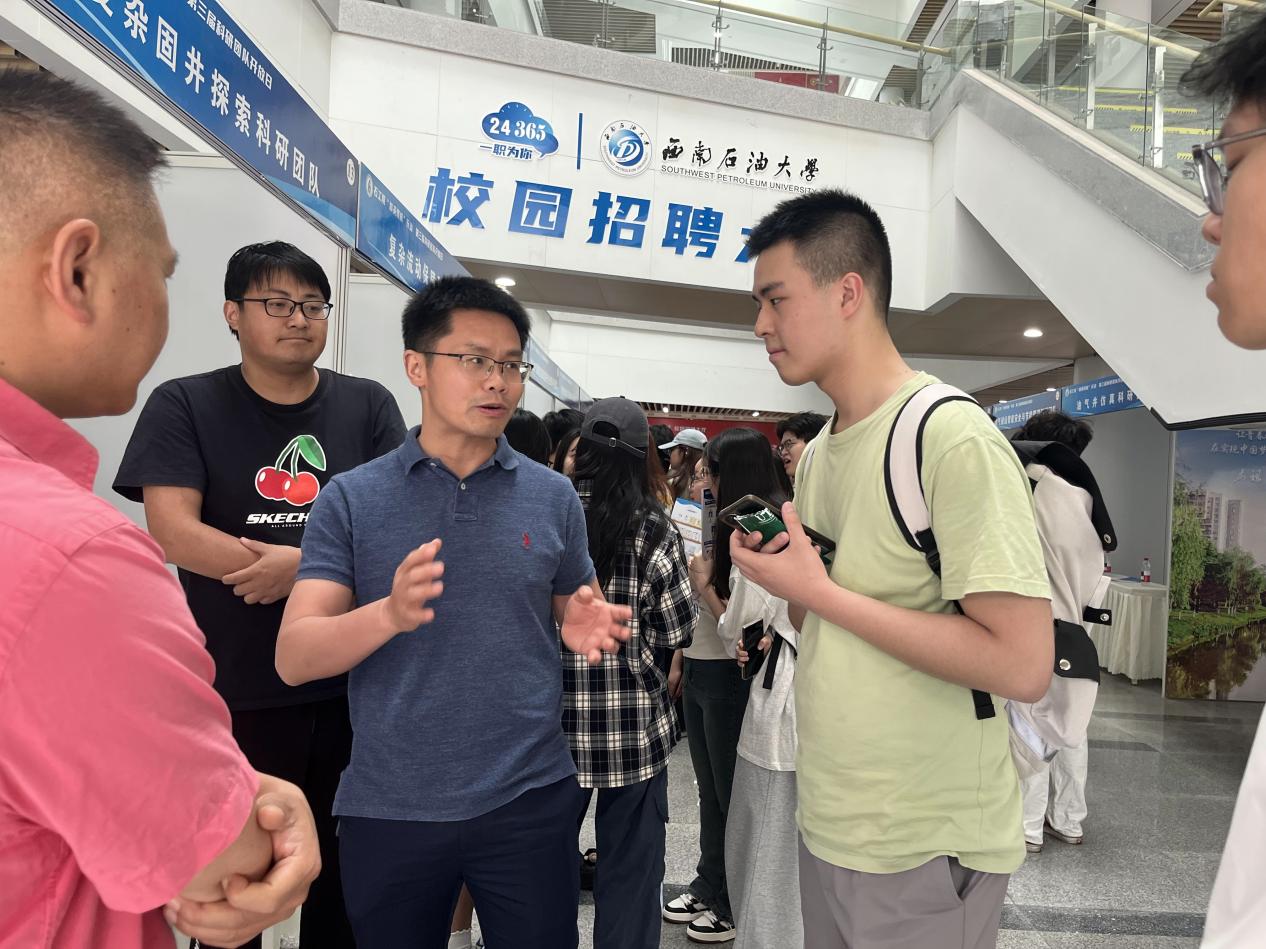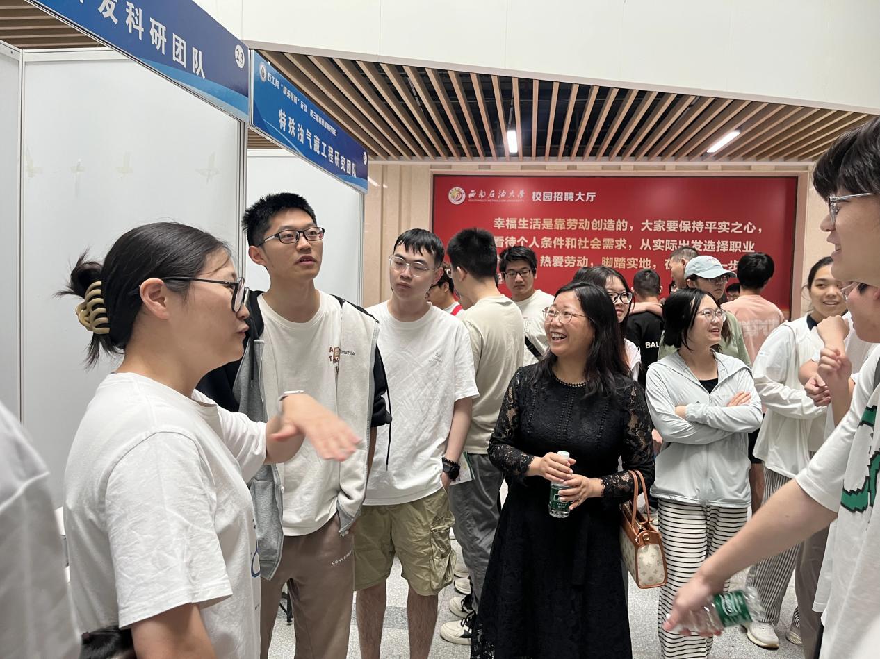 開發研究所施雷庭教授領銜的“提高采收率理論與技術”團隊被同學們團團圍住,同學們爭相請教。采油研究所“儲層增產改造創新團隊”盧聰、王琨、曾凡輝等12位教師組成強大陣容迎接同學們,大批學生與他們駐足交流,最后該團隊邀請了80余名學生到教室做進一步交流,向同學們科普了儲層增產改造的科學原理和工程價值,全面介紹了團隊的研究生培養體系,每個同學都收獲滿滿。