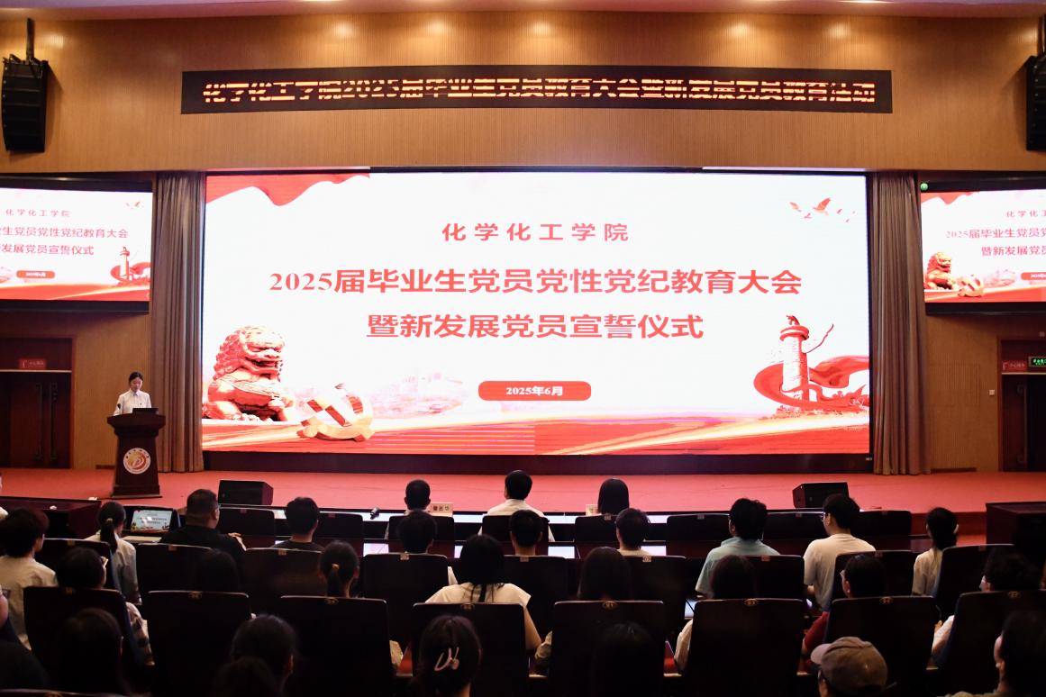 6月9日上午,化學化工學院在圖書館學術報告廳舉行2025屆畢業生黨員黨性黨紀學習教育大會暨新發展黨員宣誓儀式。