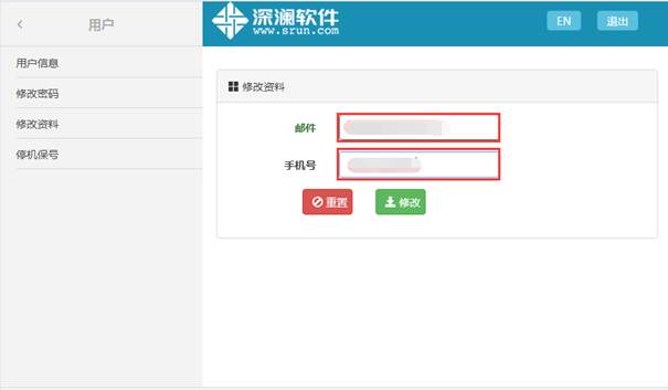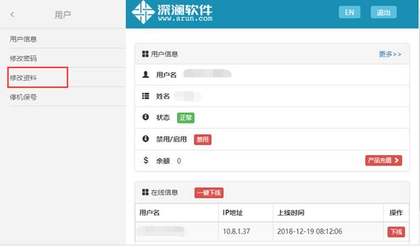 (1)登錄http://172.16.245.50:8800/進入網(wǎng)絡自助平臺,點擊左側(cè)【用戶信息】