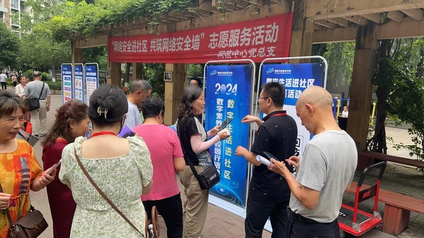 活動采用展板展示、現場講解、宣傳資料發放和有獎答題等形式開展,向社區居民宣傳防范個人信息泄露小妙招、有效防范網絡/電信詐騙、如何識別網絡陷阱等內容,解答社區居民關于網絡和信息化方面的問題。