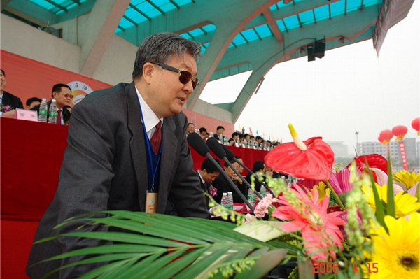 2006年4月15日張永一在學校更名揭牌儀式上講話