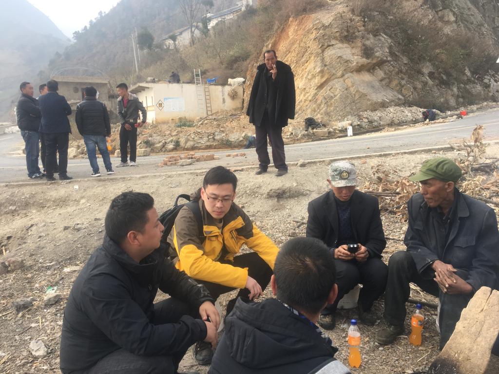 張抗(著黃衣者)和村民在村里座談 受訪者供圖