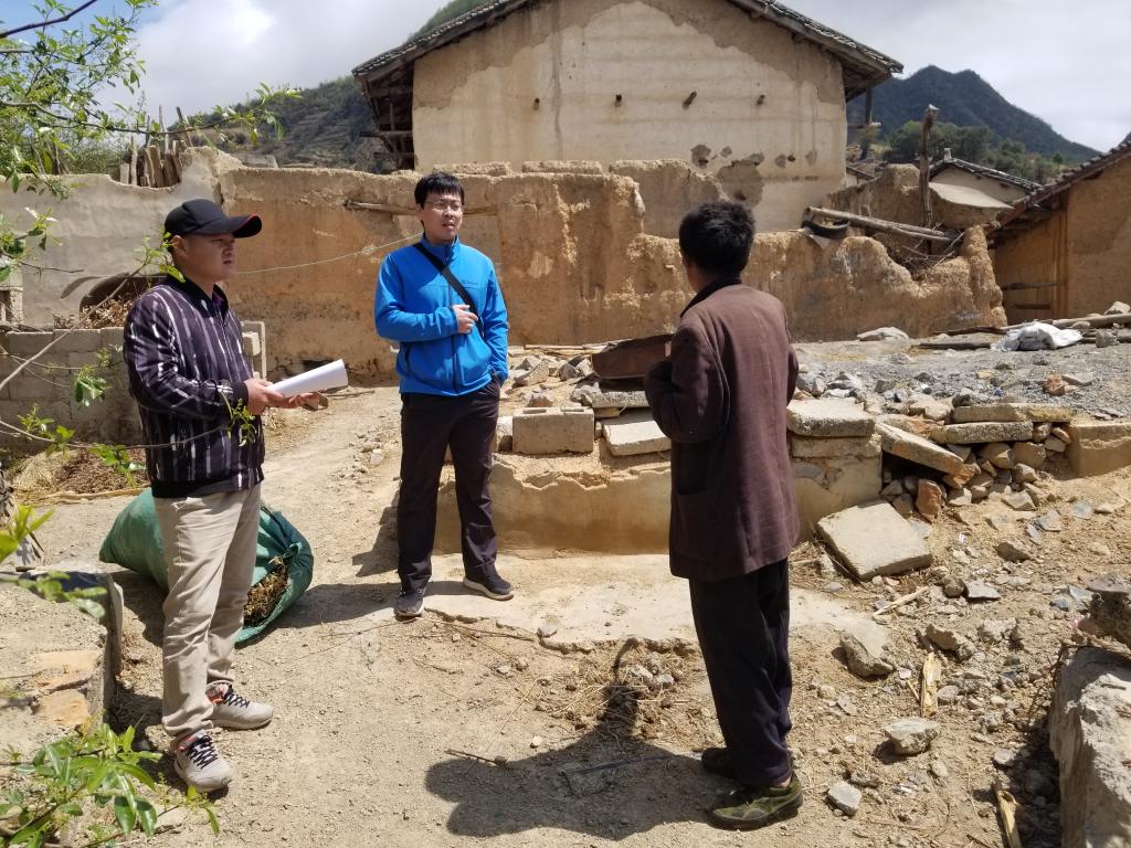 張抗(著藍衣者)和貧困戶交談 皮璟璇攝
