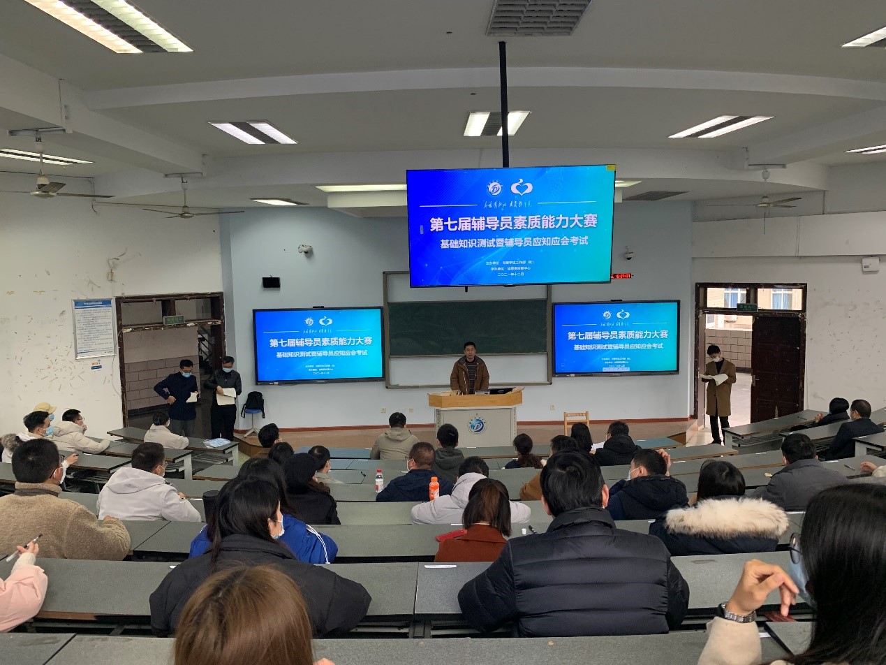 12月8日晚上7點,2021年輔導員基礎知識測試暨輔導員應知應會考試在思學樓C210舉行,各學院全體專兼職輔導員參加考試。比賽采用閉卷的方式進行,由單選題、不定項選題、簡答題、對策分析題組成,主要考察輔導員的理論素養和業務知業務知識。