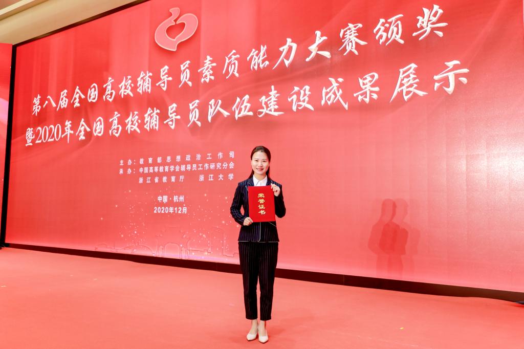 近日,由教育部思想政治工作司主辦的第八屆全國高校輔導員素質能力大賽決賽在浙江大學舉行。經過激烈角逐,大賽共評選出一等獎10項,二等獎20項,三等獎30項,我校經濟管理學院輔導員王娟憑借扎實的理論功底、過硬的專業素養和出色的賽場表現,以全國第17名的優異成績榮獲二等獎,這也是我校輔導員第二次在該賽事中獲得二等獎。
