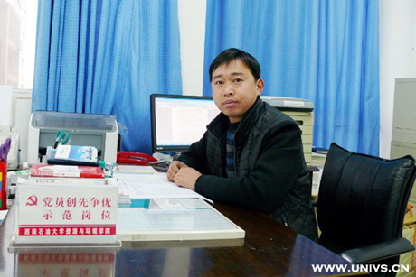 于百江,男,漢族,中共黨員,1978年2月生。2003年7月起從事輔導員工作,現任西南石油大學地球科學與技術學院團委書記兼資源勘查工程、勘查技術與工程、地理信息系統2010級(371人)輔導員,同時兼任院第一學生黨支部書記。十年來,他積極開展“三育人”工作,努力發揮共產黨員的先鋒模范作用。在平凡的崗位上忠實地實踐著自己的人生信條——做好學生的引路者、貼心人和生活導師。2004年以來先后獲得四川省優秀輔導員、南充市暑期社會實踐優秀指導教師、校第五屆職業道德模范、優秀學生工作者、優秀共產黨員、就業先進工作者等榮譽稱號。