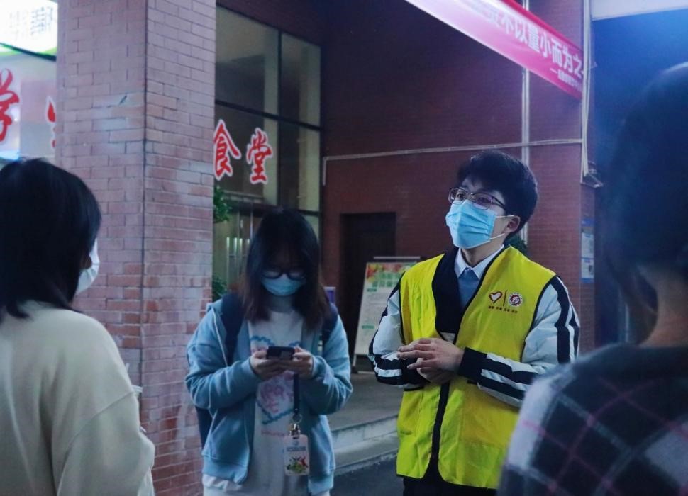 校青協(xié)主席團成員張映江立即投入到了應(yīng)急志愿服務(wù)的工作中來,對前往學生一線的各崗位志愿者進行協(xié)調(diào)安排。在志愿服務(wù)中,他提到“每一位志愿者都展現(xiàn)了“疫”無反顧的擔當,有序前往各個點位維持秩序,為防疫筑起一堵堅實的城墻。”同樣作為一線志愿者的袁繼興,奮戰(zhàn)在疫情防控工作前線,在食堂維護秩序和負責餐盒打包,同時擔任層長,提醒同學佩戴口罩、下樓做核酸,協(xié)助開展核酸檢測、出入門卡發(fā)放等工作。