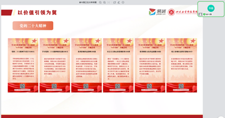 隨后,崔書(shū)磊詳細(xì)介紹了所在院校部分創(chuàng)新網(wǎng)絡(luò)文化活動(dòng),如“詩(shī)書(shū)心語(yǔ)”、“以文會(huì)友 青年說(shuō)”、“綠植領(lǐng)養(yǎng)”“黨的二十大精神系列100講學(xué)習(xí)”等,從活動(dòng)方案編輯到活動(dòng)統(tǒng)計(jì)數(shù)據(jù),從活動(dòng)投入各類資源到活動(dòng)成果展示播放,細(xì)致介紹了學(xué)校對(duì)輕應(yīng)用、易喵喵、騰訊文檔、QQ直播等融媒體平臺(tái)的合理利用。