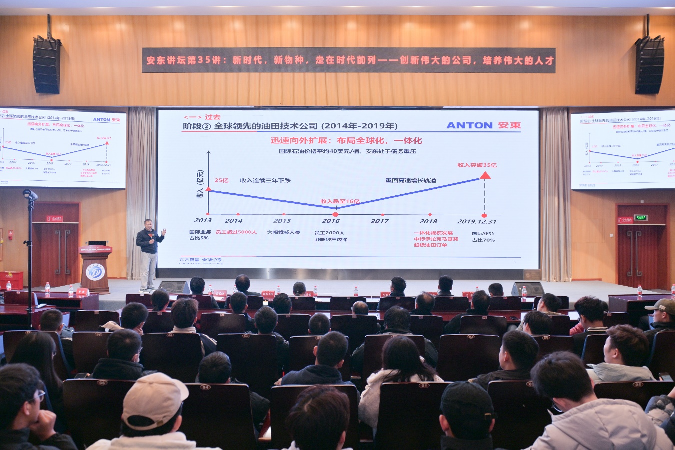 “安東講壇”在安東油田服務集團的贊助支持下,已成功舉辦35講,曾邀請尼格買提、馬伯庸等名家大師來校講座,致力推動優(yōu)秀企業(yè)文化、高端學術(shù)、高雅藝術(shù)進校園。