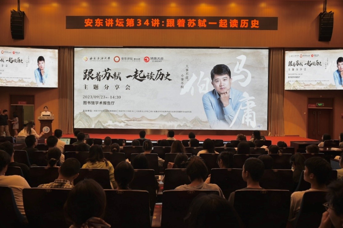 9月23日,安東講壇第34講:馬伯庸《跟著蘇軾一起讀歷史》主題分享會在我校圖書館學術報告廳舉辦。本次講座由西南石油大學國家大學生文化素質教育基地、黨委學生工作部(處)、馬克思主義學院、四川省重點中華優秀傳統文化研究院儒學文化研究院聯合主辦。