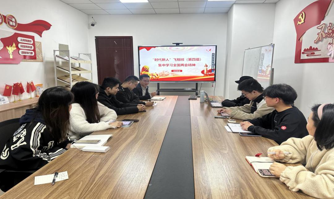 3月17日,飛翔班第3組全體成員在指導老師章志華的帶領下,于明志樓B504會議室,圍繞“學習貫徹兩會精神,踐行青年時代擔當”主題開展專題研討。章志華重點解讀了數字經濟創新、鄉村振興戰略等與大學生成長密切相關的政策,結合組員情況,對“教育強國、科技強國、人才強國”展開詳細解讀。小組成員結合專業特色,針對兩會熱議的“高質量就業”議題,探討了跨學科能力培養、基層就業政策支持等現實路徑。章志華強調,“要將政策文本轉化為實踐坐標,讓青春在解決社會痛點的實踐中閃光。”