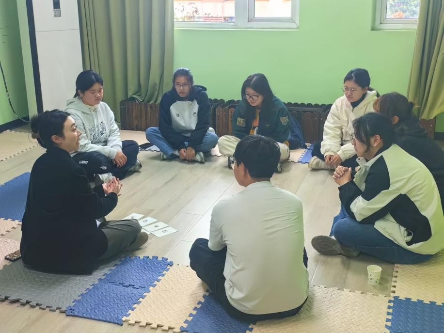活動初始,同學們尚顯拘束,宋姝蕾老師帶著同學們進入“你演我答——情緒猜猜猜”這一破冰游戲環節。她事先準備了一系列描繪情緒的詞語,同學們隨機抽取情緒詞語,以肢體語言生動演繹這些情緒,其余同學全神貫注,踴躍猜測所演情緒。這一環節不僅巧妙地消除了同學們之間的陌生感,更讓會場的氣氛迅速變得熱烈而歡快。