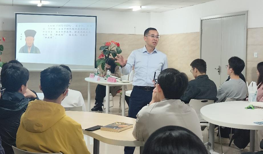 錢廣領(lǐng)讀并向同學(xué)們推薦《五百年來王陽明》一書。錢廣指出,黨的十八大以來,各項(xiàng)事業(yè)發(fā)生了歷史性變革,取得了歷史性成就,離不開中華優(yōu)秀傳統(tǒng)文化的豐厚滋養(yǎng),而陽明心學(xué)是中國(guó)傳統(tǒng)文化的精華。他圍繞王陽明“三次悟道”“三大事功”,生動(dòng)地闡釋了“知行合一”的心學(xué)智慧,闡釋陽明心學(xué)對(duì)心性修養(yǎng)的價(jià)值,并分享道:通過“心外無物”“心即理”來塑造人生的氣象、通過“知行合一”來增進(jìn)人生的智慧、通過“致良知”來構(gòu)建人生的境界。他勉勵(lì)同學(xué)們弘揚(yáng)以陽明心學(xué)為代表的中華優(yōu)秀傳統(tǒng)文化,促進(jìn)黨性修養(yǎng)與傳統(tǒng)心學(xué)在新的歷史條件融合。