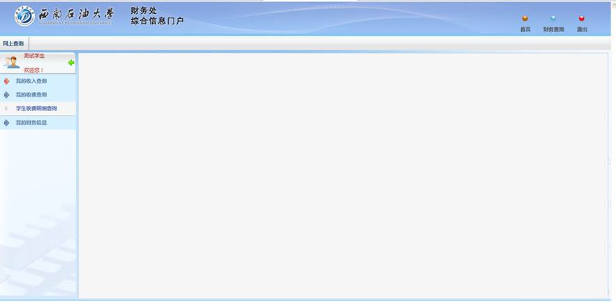 (一)進(jìn)入查詢界面,單擊“高級(jí)財(cái)務(wù)查詢”——“我的收費(fèi)查詢”——“學(xué)生收費(fèi)明細(xì)查詢”。